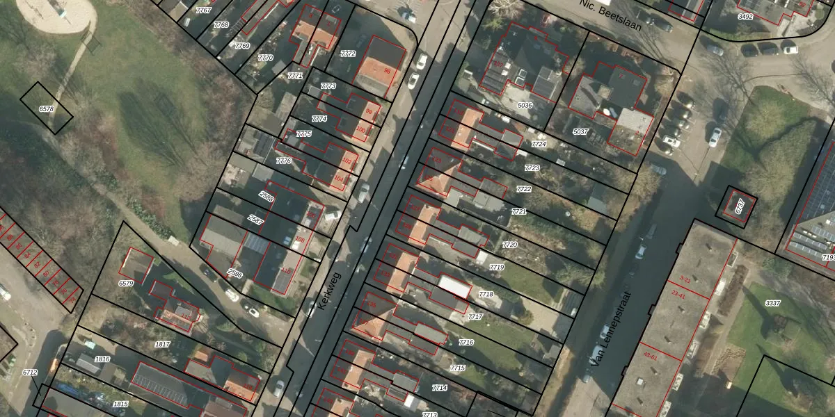 Gebruik de zoekbalk of klik op een perceel voor informatie over de adressen binnen dit perceel.