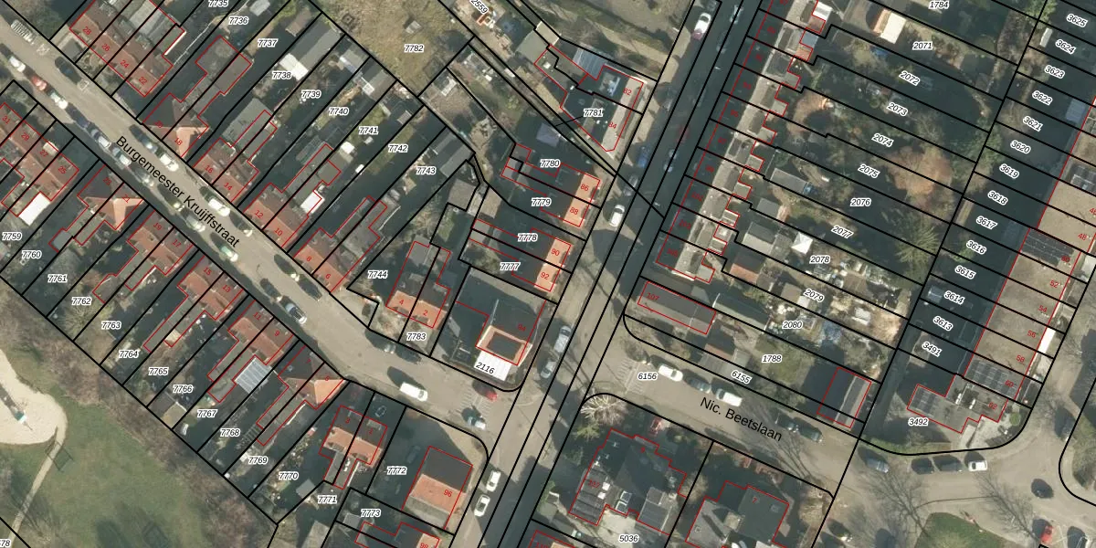 Gebruik de zoekbalk of klik op een perceel voor informatie over de adressen binnen dit perceel.