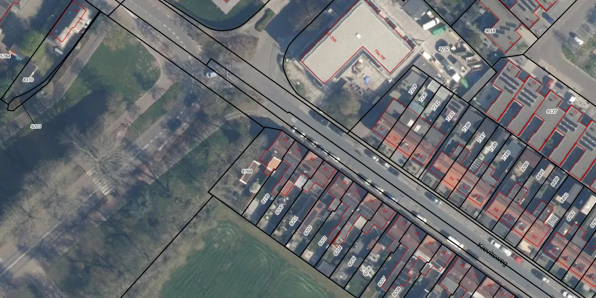 Het perceel waarop Kievitsweg 65 staat heeft een oppervlakte van 185 m². Dit is een middelgroot perceel. De perceeloppervlakte wordt geregistreerd door het Kadaster. Gedetailleerde informatie over de maten van dit perceel kunt u vinden in het rapport Kadastrale kaart met maatvoering van Kievitsweg 65.