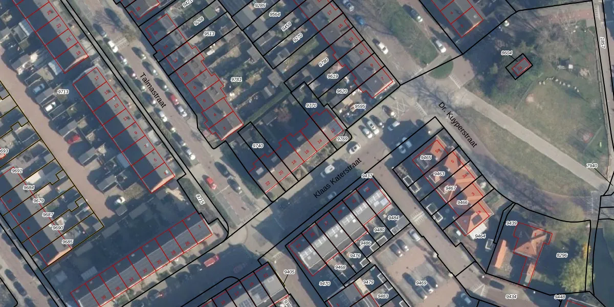 Klaas Katerstraat 16 is gelegen op kadastraal perceel RDK01A9781. Deze kadastrale aanduiding is uniek en wordt gebruikt door het Kadaster om eigendomsrechten en andere zakelijke rechten vast te leggen. Het perceel maakt onderdeel uit van de kadastrale gemeente Ridderkerk.
