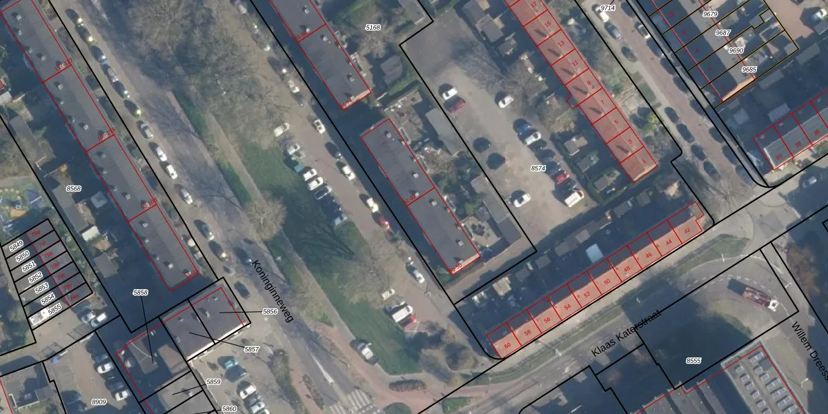 Het perceel waarop Koninginneweg 46 staat heeft een oppervlakte van 2761 m². Dit is een zeer groot perceel. De perceeloppervlakte wordt geregistreerd door het Kadaster. Gedetailleerde informatie over de maten van dit perceel kunt u vinden in het rapport Kadastrale kaart met maatvoering van Koninginneweg 46.