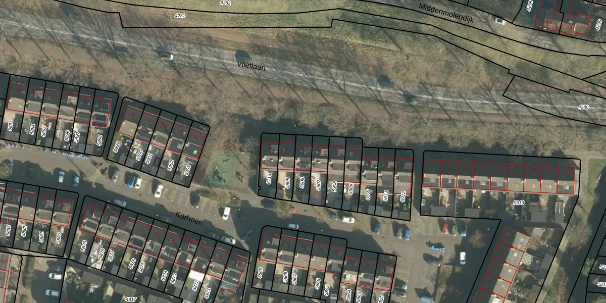 Korhoen 49 is gelegen op kadastraal perceel RDK01H5906. Deze kadastrale aanduiding is uniek en wordt gebruikt door het Kadaster om eigendomsrechten en andere zakelijke rechten vast te leggen. Het perceel maakt onderdeel uit van de kadastrale gemeente Ridderkerk.
