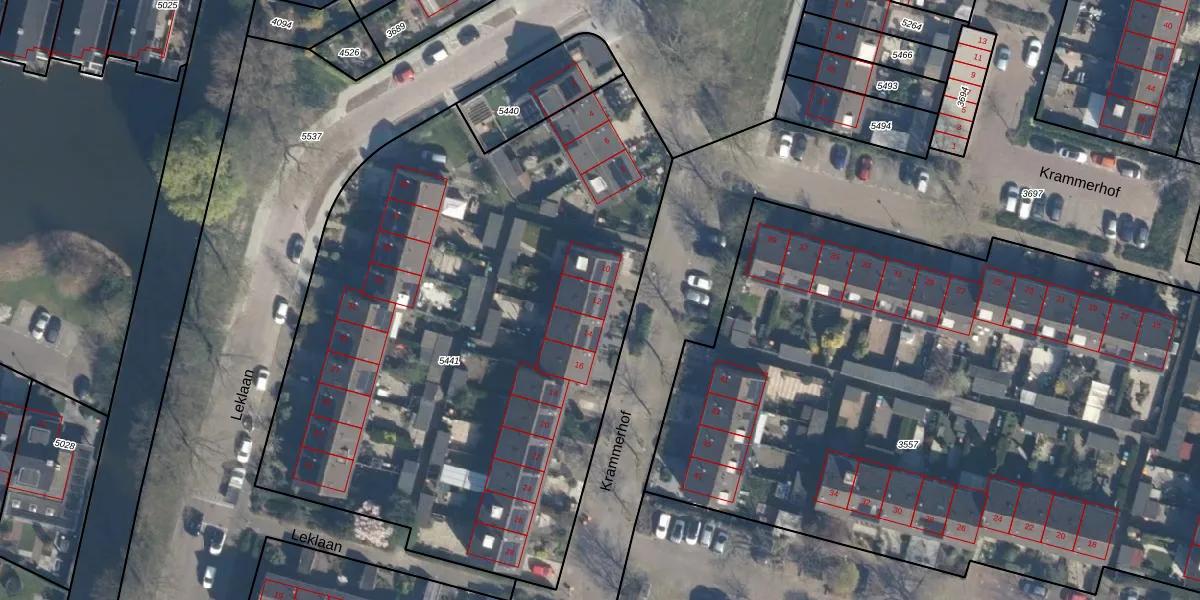 Krammerhof 12 is gelegen op kadastraal perceel RDK01G5441. Deze kadastrale aanduiding is uniek en wordt gebruikt door het Kadaster om eigendomsrechten en andere zakelijke rechten vast te leggen. Het perceel maakt onderdeel uit van de kadastrale gemeente Ridderkerk.