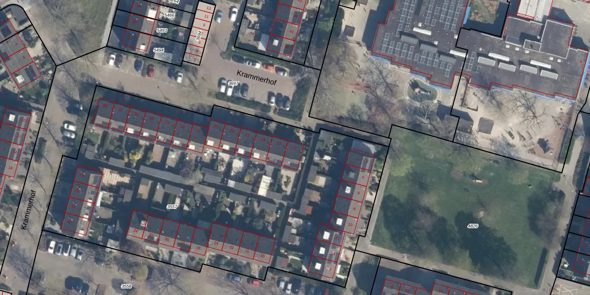 Krammerhof 15 is gelegen op kadastraal perceel RDK01G3557. Deze kadastrale aanduiding is uniek en wordt gebruikt door het Kadaster om eigendomsrechten en andere zakelijke rechten vast te leggen. Het perceel maakt onderdeel uit van de kadastrale gemeente Ridderkerk.