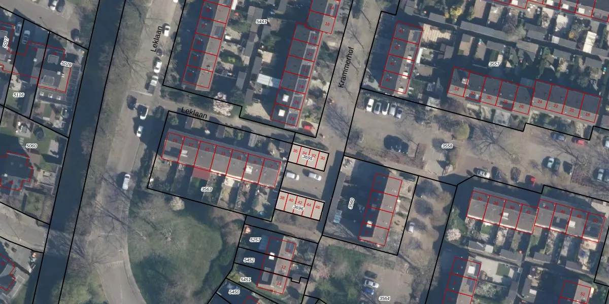 Het perceel waarop Krammerhof 34 staat heeft een oppervlakte van 73 m². Dit is een klein perceel. De perceeloppervlakte wordt geregistreerd door het Kadaster. Gedetailleerde informatie over de maten van dit perceel kunt u vinden in het rapport Kadastrale kaart met maatvoering van Krammerhof 34.