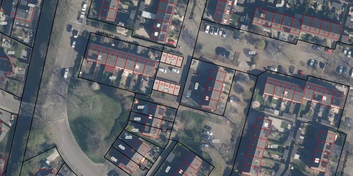 Het perceel waarop Krammerhof 46 staat heeft een oppervlakte van 90 m². Dit is een klein perceel. De perceeloppervlakte wordt geregistreerd door het Kadaster. Gedetailleerde informatie over de maten van dit perceel kunt u vinden in het rapport Kadastrale kaart met maatvoering van Krammerhof 46.