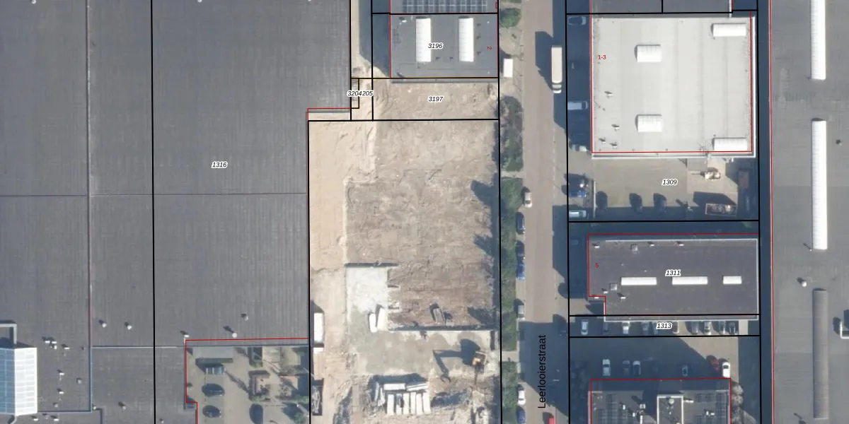 Het perceel waarop Leerlooierstraat 14 staat heeft een oppervlakte van 4045 m². Dit is een zeer groot perceel. De perceeloppervlakte wordt geregistreerd door het Kadaster. Gedetailleerde informatie over de maten van dit perceel kunt u vinden in het rapport Kadastrale kaart met maatvoering van Leerlooierstraat 14.