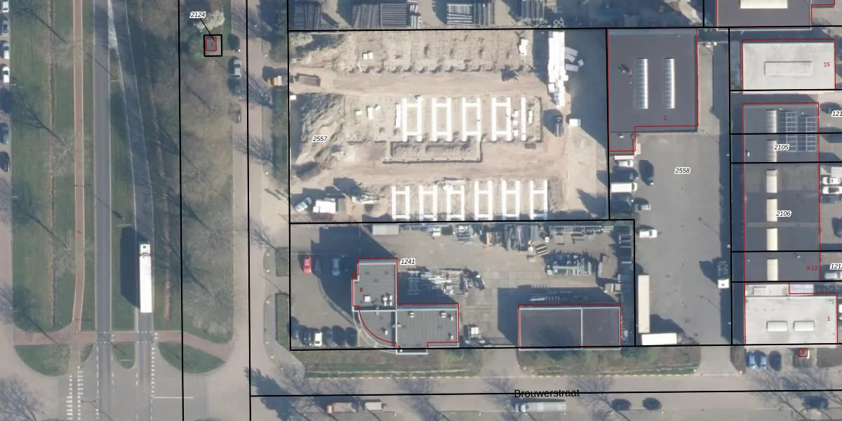 Het adres is gelegen op perceel 2557 in de sectie B en de kadastrale gemeente Ridderkerk. De kadastrale aanduiding is aldus RDK01-B-2557. De oppervlakte van het perceel is 3474 m². Dat is groter dan gemiddeld in Ridderkerk, waar de gemiddelde perceeloppervlakte op 1571,46 m² ligt. Het grootste perceel in de kadastrale gemeente is 61,6 ha. Het kleinste perceel heeft een oppervlakte van 0 m². Op het perceel zijn 205 adressen aanwezig. De huidige grenzen van het perceel zijn digitaal in de Basisregistratie Kadaster (BRK) geregistreerd op 11-08-2009.