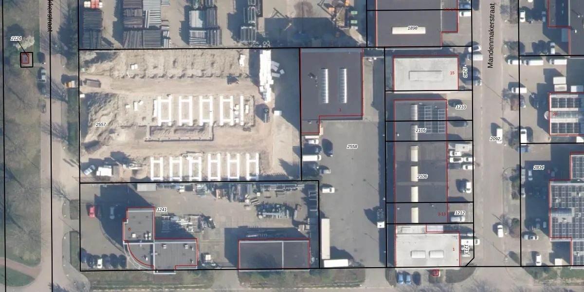 Het adres is gelegen op perceel 2557 in de sectie B en de kadastrale gemeente Ridderkerk. De kadastrale aanduiding is aldus RDK01-B-2557. De oppervlakte van het perceel is 3474 m². Dat is groter dan gemiddeld in Ridderkerk, waar de gemiddelde perceeloppervlakte op 1571,46 m² ligt. Het grootste perceel in de kadastrale gemeente is 61,6 ha. Het kleinste perceel heeft een oppervlakte van 0 m². Er zijn 205 adressen aanwezig op het perceel. De huidige grenzen van het perceel zijn digitaal in de Basisregistratie Kadaster (BRK) geregistreerd op 11-08-2009.