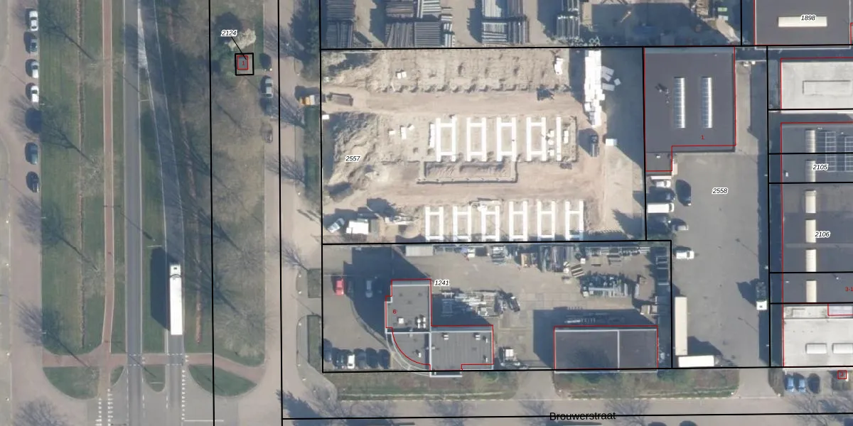 Het adres is gelegen op perceel 2557 in de sectie B en de kadastrale gemeente Ridderkerk. De kadastrale aanduiding is aldus RDK01-B-2557. De oppervlakte van het perceel is 3474 m². Dat is groter dan gemiddeld in Ridderkerk, waar de gemiddelde perceeloppervlakte op 1571,46 m² ligt. De grootste perceeloppervlakte in de kadastrale gemeente is 61,6 ha. De kleinste oppervlakte bedraagt 0 m². Er zijn 205 adressen aanwezig op het perceel. De huidige grenzen van het perceel zijn digitaal in de Basisregistratie Kadaster (BRK) geregistreerd op 11-08-2009.