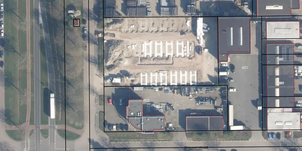 Het adres is gelegen op perceel 2557 in de sectie B en de kadastrale gemeente Ridderkerk. De kadastrale aanduiding is aldus RDK01-B-2557. De oppervlakte van het perceel is 3474 m². Dat is groter dan gemiddeld in Ridderkerk, waar de gemiddelde perceeloppervlakte op 1571,46 m² ligt. De grootste perceeloppervlakte in de kadastrale gemeente is 61,6 ha. De kleinste oppervlakte bedraagt 0 m². Er zijn 205 adressen aanwezig op het perceel. De laatste wijziging in het de Basisregistratie Kadaster (BRK) was op 11-08-2009.