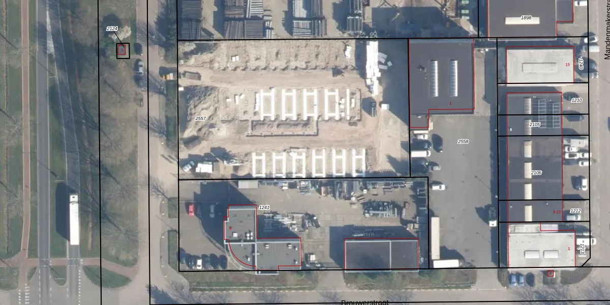 Het adres is gelegen op perceel 2557 in de sectie B en de kadastrale gemeente Ridderkerk. De kadastrale aanduiding is aldus RDK01-B-2557. De oppervlakte van het perceel is 3474 m². Dat is groter dan gemiddeld in Ridderkerk, waar de gemiddelde perceeloppervlakte op 1571,46 m² ligt. Het grootste perceel in de kadastrale gemeente is 61,6 ha. Het kleinste perceel heeft een oppervlakte van 0 m². Op het perceel liggen in totaal 205 adressen. De huidige grenzen van het perceel zijn digitaal in de Basisregistratie Kadaster (BRK) geregistreerd op 11-08-2009.