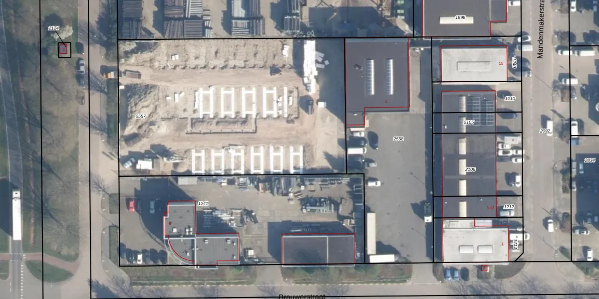 Het adres is gelegen op perceel 2557 in de sectie B en de kadastrale gemeente Ridderkerk. De kadastrale aanduiding is aldus RDK01-B-2557. De oppervlakte van het perceel is 3474 m². Dat is groter dan gemiddeld in Ridderkerk, waar de gemiddelde perceeloppervlakte op 1571,46 m² ligt. Het grootste perceel in de kadastrale gemeente is 61,6 ha. Het kleinste perceel heeft een oppervlakte van 0 m². Er zijn 205 adressen aanwezig op het perceel. De laatste wijziging in het de Basisregistratie Kadaster (BRK) was op 11-08-2009.