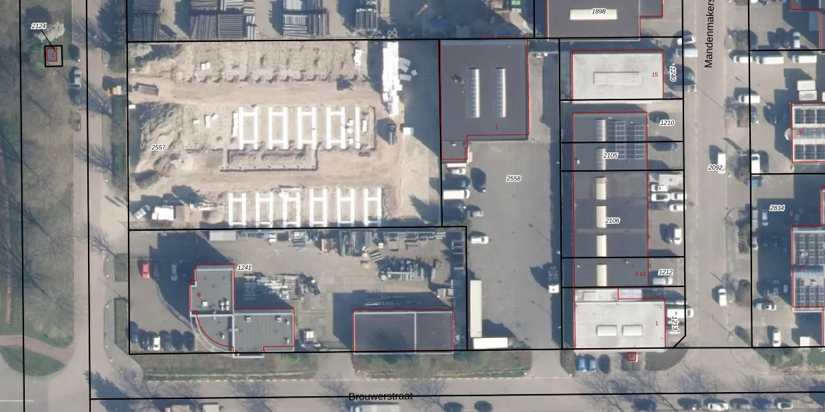 Het adres is gelegen op perceel 2557 in de sectie B en de kadastrale gemeente Ridderkerk. De kadastrale aanduiding is aldus RDK01-B-2557. De oppervlakte van het perceel is 3474 m². Dat is groter dan gemiddeld in Ridderkerk, waar de gemiddelde perceeloppervlakte op 1571,46 m² ligt. Het grootste perceel in de kadastrale gemeente is 61,6 ha. Het kleinste perceel heeft een oppervlakte van 0 m². Er zijn 205 adressen aanwezig op het perceel. In de Basisregistratie Kadaster (BRK) werden de grenzen van het perceel geregistreerd op 11-08-2009.