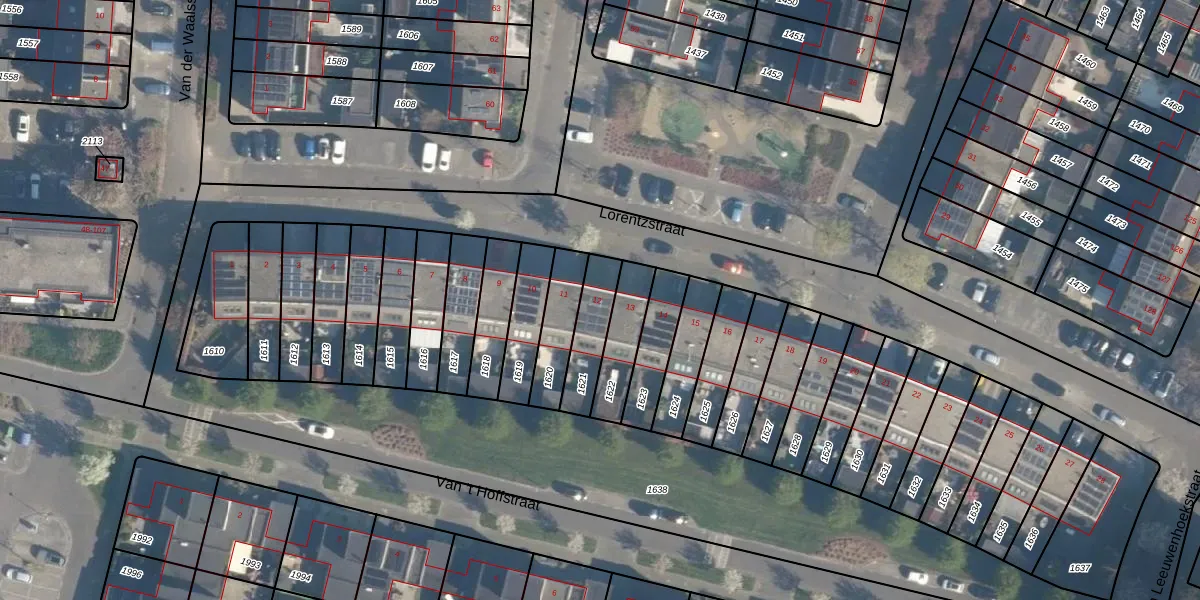 Lorentzstraat 12 is gelegen op kadastraal perceel RDK01B1621. Deze kadastrale aanduiding is uniek en wordt gebruikt door het Kadaster om eigendomsrechten en andere zakelijke rechten vast te leggen. Het perceel maakt onderdeel uit van de kadastrale gemeente Ridderkerk.