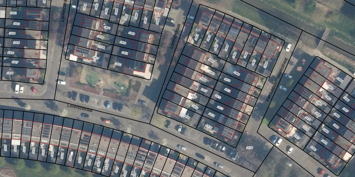 Gebruik de zoekbalk of klik op een perceel voor informatie over de adressen binnen dit perceel.