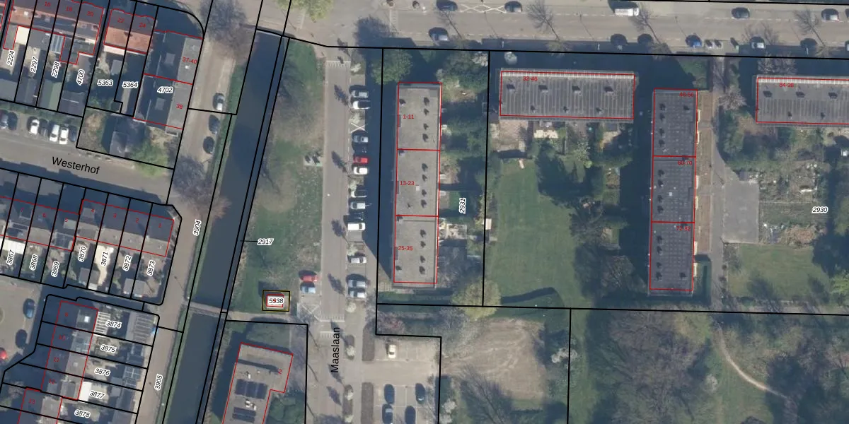 Maaslaan 23 is gelegen op kadastraal perceel RDK01G2931. Deze kadastrale aanduiding is uniek en wordt gebruikt door het Kadaster om eigendomsrechten en andere zakelijke rechten vast te leggen. Het perceel maakt onderdeel uit van de kadastrale gemeente Ridderkerk.