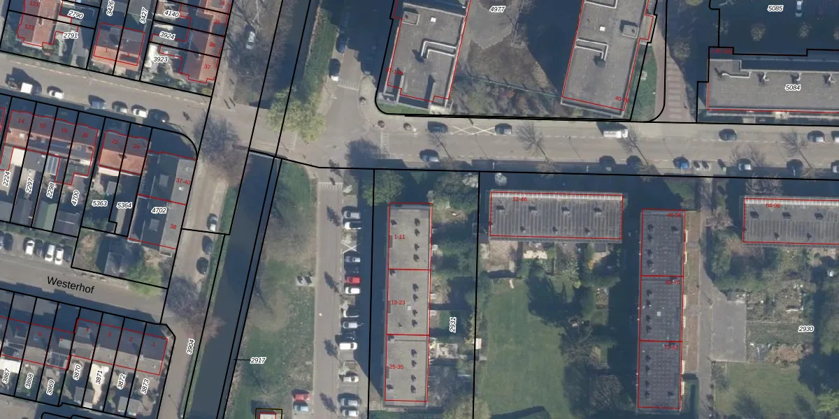 Het adres is gelegen op perceel 2931 in de sectie G en de kadastrale gemeente Ridderkerk. De kadastrale aanduiding is aldus RDK01-G-2931. Het perceel is 1511 m² groot. Dat is kleiner dan de gemiddelde perceeloppervlakte in Ridderkerk, dat op 1571,46 m² ligt. De grootste perceeloppervlakte in de kadastrale gemeente is 61,6 ha. De kleinste oppervlakte bedraagt 0 m². Op het perceel zijn 18 adressen aanwezig. De huidige grenzen van het perceel zijn digitaal in de Basisregistratie Kadaster (BRK) geregistreerd op 07-05-2008.