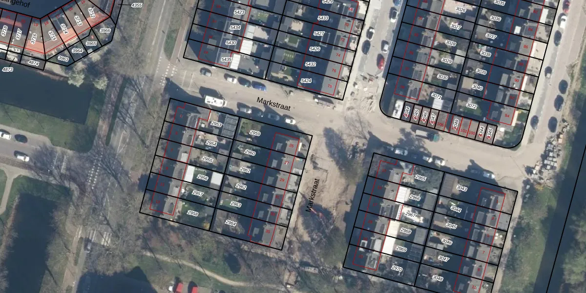 Markstraat 25 is gelegen op kadastraal perceel RDK01G2959. Deze kadastrale aanduiding is uniek en wordt gebruikt door het Kadaster om eigendomsrechten en andere zakelijke rechten vast te leggen. Het perceel maakt onderdeel uit van de kadastrale gemeente Ridderkerk.