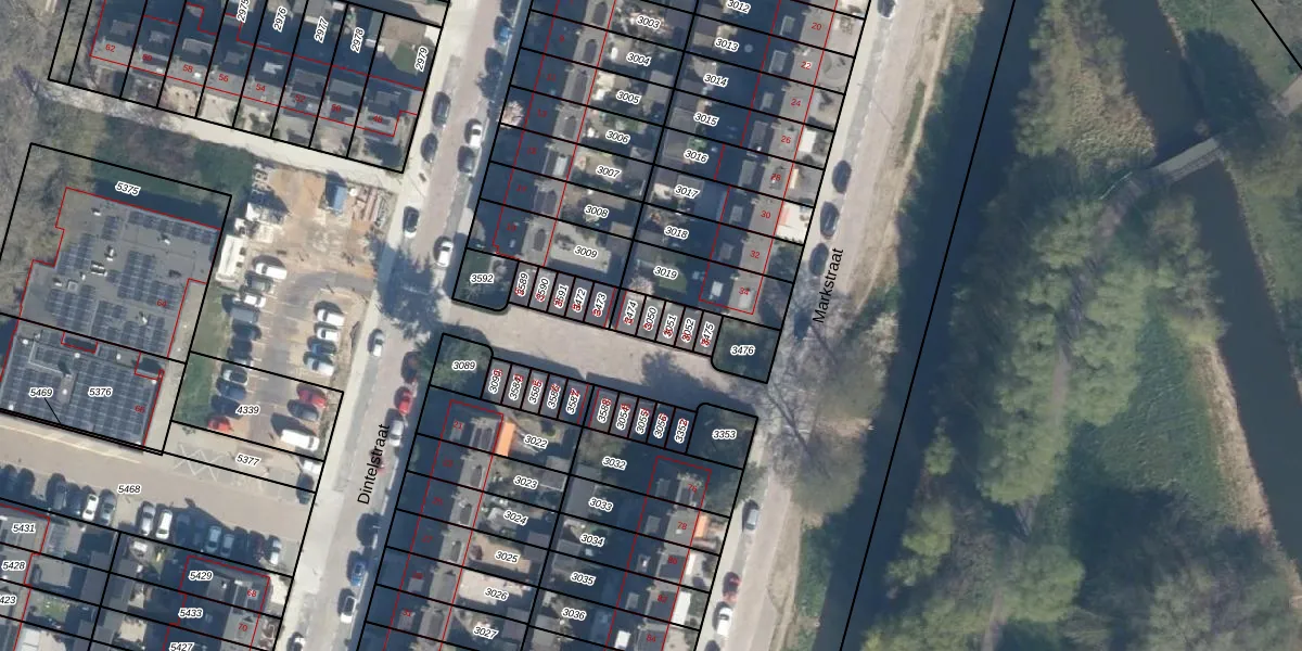 Het perceel waarop Markstraat 42 staat heeft een oppervlakte van 19 m². Dit is een klein perceel. De perceeloppervlakte wordt geregistreerd door het Kadaster. Gedetailleerde informatie over de maten van dit perceel kunt u vinden in het rapport Kadastrale kaart met maatvoering van Markstraat 42.