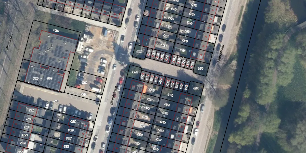 Het perceel waarop Markstraat 60 staat heeft een oppervlakte van 18 m². Dit is een klein perceel. De perceeloppervlakte wordt geregistreerd door het Kadaster. Gedetailleerde informatie over de maten van dit perceel kunt u vinden in het rapport Kadastrale kaart met maatvoering van Markstraat 60.