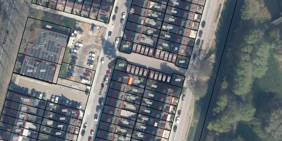 Het perceel waarop Markstraat 62 staat heeft een oppervlakte van 19 m². Dit is een klein perceel. De perceeloppervlakte wordt geregistreerd door het Kadaster. Gedetailleerde informatie over de maten van dit perceel kunt u vinden in het rapport Kadastrale kaart met maatvoering van Markstraat 62.