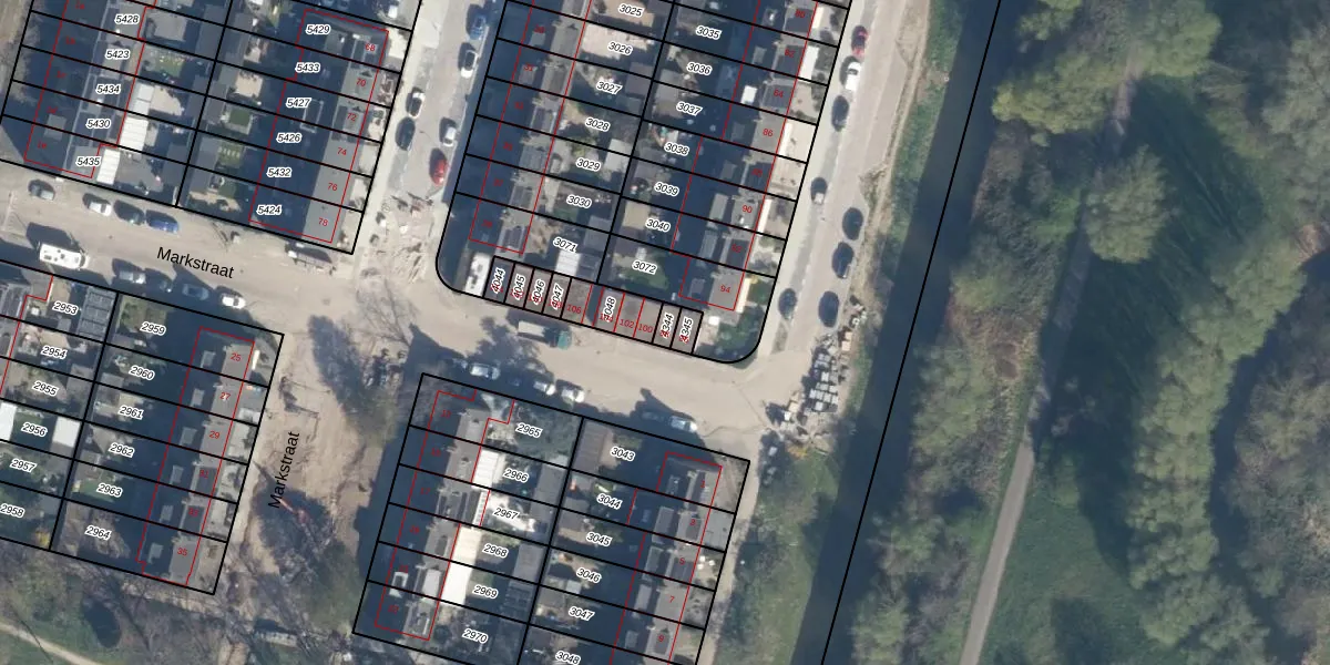 Het perceel waarop Markstraat 98 staat heeft een oppervlakte van 20 m². Dit is een klein perceel. De perceeloppervlakte wordt geregistreerd door het Kadaster. Gedetailleerde informatie over de maten van dit perceel kunt u vinden in het rapport Kadastrale kaart met maatvoering van Markstraat 98.