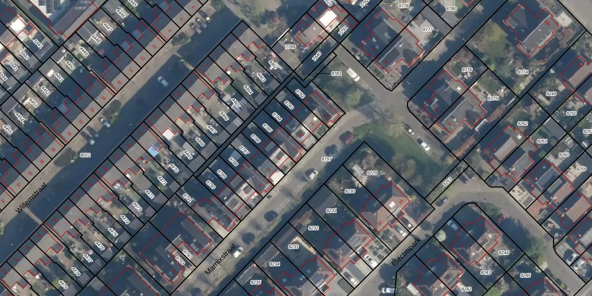 Het perceel waarop Marnixstraat 12 staat heeft een oppervlakte van 113 m². Dit is een middelgroot perceel. De perceeloppervlakte wordt geregistreerd door het Kadaster. Gedetailleerde informatie over de maten van dit perceel kunt u vinden in het rapport Kadastrale kaart met maatvoering van Marnixstraat 12.