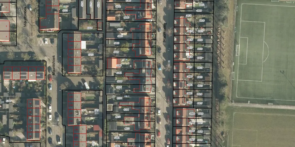 Het perceel waarop Mauritsweg 51 staat heeft een oppervlakte van 175 m². Dit is een middelgroot perceel. De perceeloppervlakte wordt geregistreerd door het Kadaster. Gedetailleerde informatie over de maten van dit perceel kunt u vinden in het rapport Kadastrale kaart met maatvoering van Mauritsweg 51.