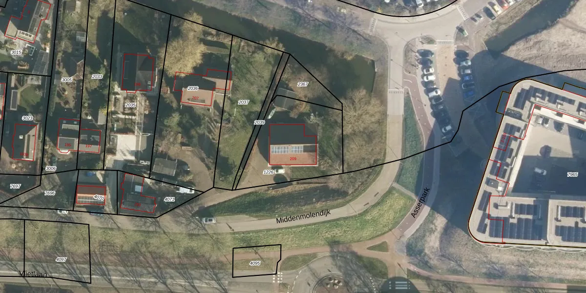 Middenmolendijk 209 is gelegen op kadastraal perceel RDK01B1226. Deze kadastrale aanduiding is uniek en wordt gebruikt door het Kadaster om eigendomsrechten en andere zakelijke rechten vast te leggen. Het perceel maakt onderdeel uit van de kadastrale gemeente Ridderkerk.