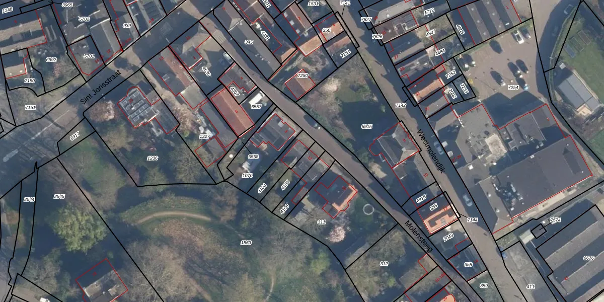 Het perceel waarop Molensteeg 10 staat heeft een oppervlakte van 155 m². Dit is een middelgroot perceel. De perceeloppervlakte wordt geregistreerd door het Kadaster. Gedetailleerde informatie over de maten van dit perceel kunt u vinden in het rapport Kadastrale kaart met maatvoering van Molensteeg 10.