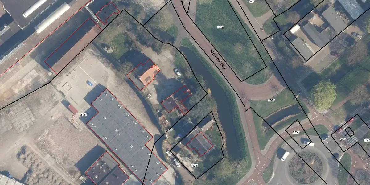 Het perceel waarop Molensteeg 36 staat heeft een oppervlakte van 8630 m². Dit is een zeer groot perceel. De perceeloppervlakte wordt geregistreerd door het Kadaster. Gedetailleerde informatie over de maten van dit perceel kunt u vinden in het rapport Kadastrale kaart met maatvoering van Molensteeg 36.