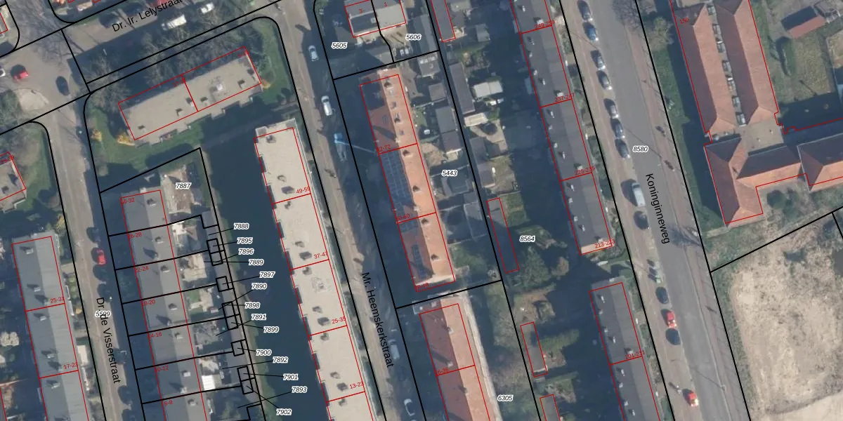 Mr. Heemskerkstraat 54 is gelegen op kadastraal perceel RDK01A5443. Deze kadastrale aanduiding is uniek en wordt gebruikt door het Kadaster om eigendomsrechten en andere zakelijke rechten vast te leggen. Het perceel maakt onderdeel uit van de kadastrale gemeente Ridderkerk.