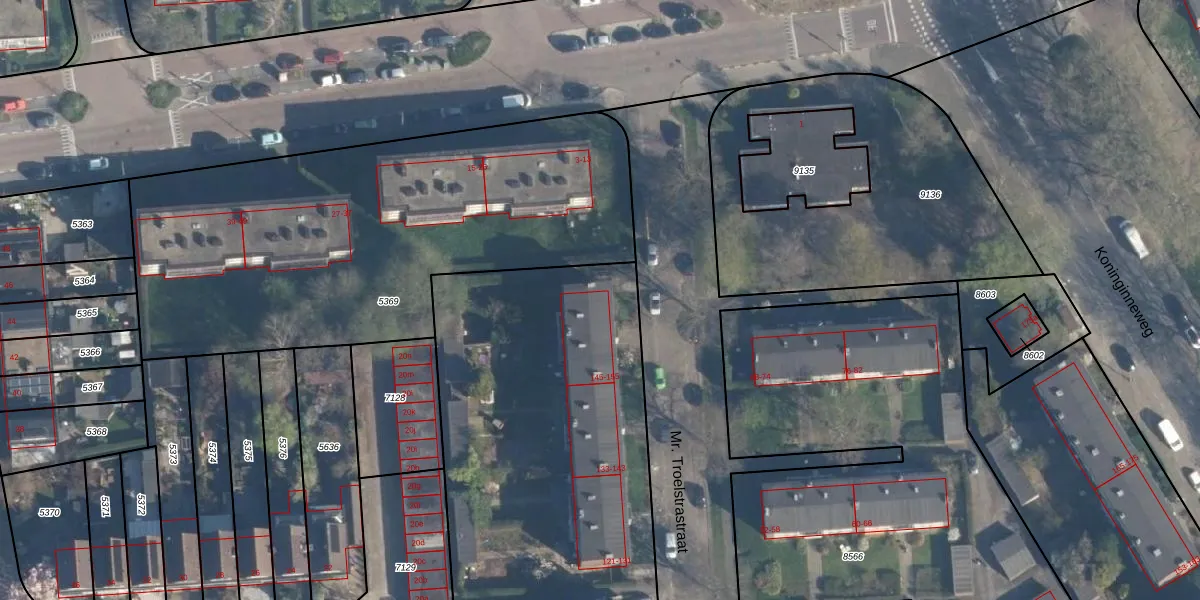 Mr. Troelstrastraat 151 is gelegen op kadastraal perceel RDK01A5266. Deze kadastrale aanduiding is uniek en wordt gebruikt door het Kadaster om eigendomsrechten en andere zakelijke rechten vast te leggen. Het perceel maakt onderdeel uit van de kadastrale gemeente Ridderkerk.