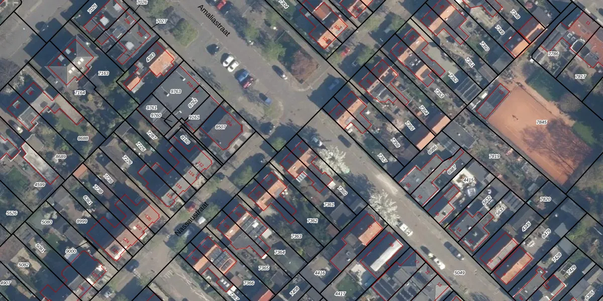Het perceel waarop Nassaustraat 115 staat heeft een oppervlakte van 182 m². Dit is een middelgroot perceel. De perceeloppervlakte wordt geregistreerd door het Kadaster. Gedetailleerde informatie over de maten van dit perceel kunt u vinden in het rapport Kadastrale kaart met maatvoering van Nassaustraat 115.