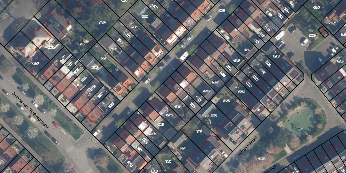 Het adres is gelegen op perceel 6966 in de sectie A en de kadastrale gemeente Ridderkerk. De kadastrale aanduiding is aldus RDK01-A-6966. Het perceel is kleiner dan gemiddeld in Ridderkerk. Het perceel is 135 m² groot, terwijl het gemiddelde ligt op 1571,07 m². Het grootste perceel in de kadastrale gemeente is 61,6 ha. Het kleinste perceel heeft een oppervlakte van 0 m². Dit is het enige adres dat aanwezig is op het perceel. De huidige grenzen van het perceel zijn digitaal in de Basisregistratie Kadaster (BRK) geregistreerd op 24-03-2005.