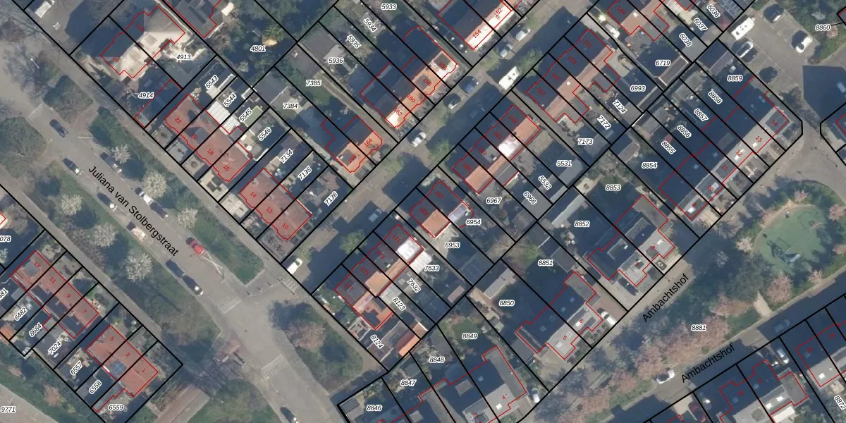 Het perceel waarop het adres ligt is RDK01-A-6953. De afkorting 'RDK01' staat voor kadastrale gemeente Ridderkerk. Het perceel is kleiner dan gemiddeld in Ridderkerk. Het perceel is 193 m² groot, terwijl het gemiddelde ligt op 1570,98 m². Het grootste perceel in de kadastrale gemeente is 61,6 ha. Het kleinste perceel heeft een oppervlakte van 0 m². Op het perceel bevinden zich geen andere adressen. De huidige grenzen van het perceel zijn digitaal in de Basisregistratie Kadaster (BRK) geregistreerd op 24-03-2005.