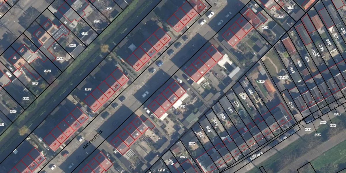 Het perceel waarop Nassaustraat 203 staat heeft een oppervlakte van 4033 m². Dit is een zeer groot perceel. De perceeloppervlakte wordt geregistreerd door het Kadaster. Gedetailleerde informatie over de maten van dit perceel kunt u vinden in het rapport Kadastrale kaart met maatvoering van Nassaustraat 203.
