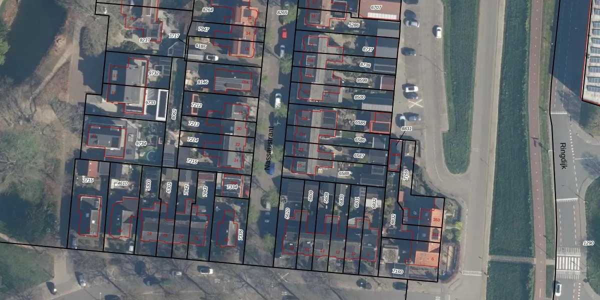 Nassaustraat 23 is gelegen op kadastraal perceel RDK01A6587. Deze kadastrale aanduiding is uniek en wordt gebruikt door het Kadaster om eigendomsrechten en andere zakelijke rechten vast te leggen. Het perceel maakt onderdeel uit van de kadastrale gemeente Ridderkerk.
