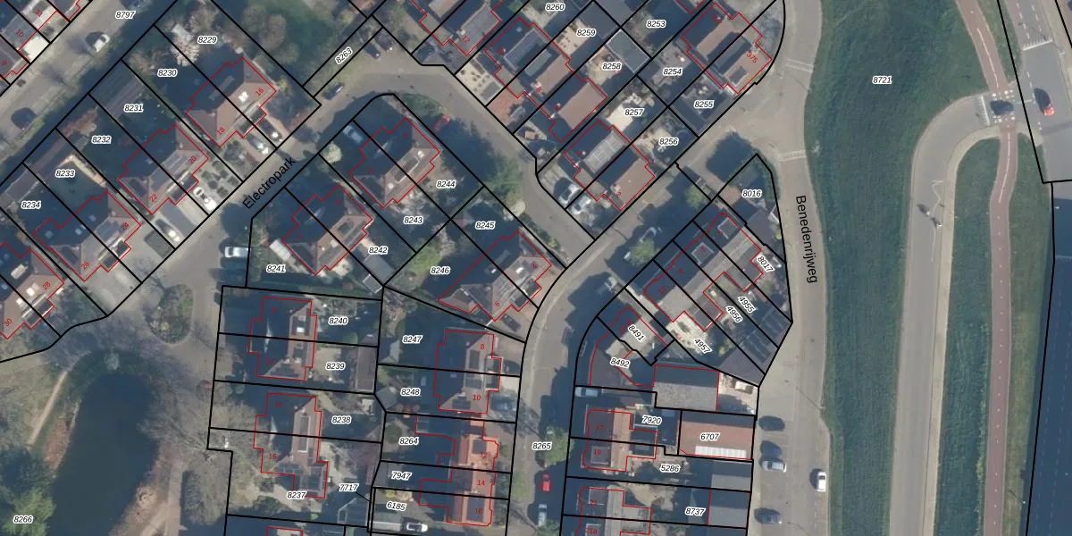 Het adres is gelegen op perceel 8245 in de sectie A en de kadastrale gemeente Ridderkerk. De kadastrale aanduiding is aldus RDK01-A-8245. Het perceel is 200 m² groot. Dat is kleiner dan de gemiddelde perceeloppervlakte in Ridderkerk, dat op 1570,98 m² ligt. De grootste perceeloppervlakte in de kadastrale gemeente is 61,6 ha. De kleinste oppervlakte bedraagt 0 m². Er zijn geen andere adressen aanwezig op het perceel. De huidige grenzen van het perceel zijn digitaal in de Basisregistratie Kadaster (BRK) geregistreerd op 06-12-2001.