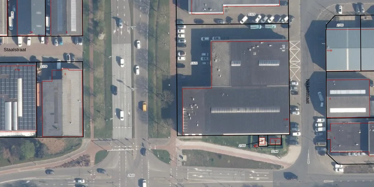 Het perceel waarop Nikkelstraat 3-d staat heeft een oppervlakte van 3570 m². Dit is een zeer groot perceel. De perceeloppervlakte wordt geregistreerd door het Kadaster. Gedetailleerde informatie over de maten van dit perceel kunt u vinden in het rapport Kadastrale kaart met maatvoering van Nikkelstraat 3-d.