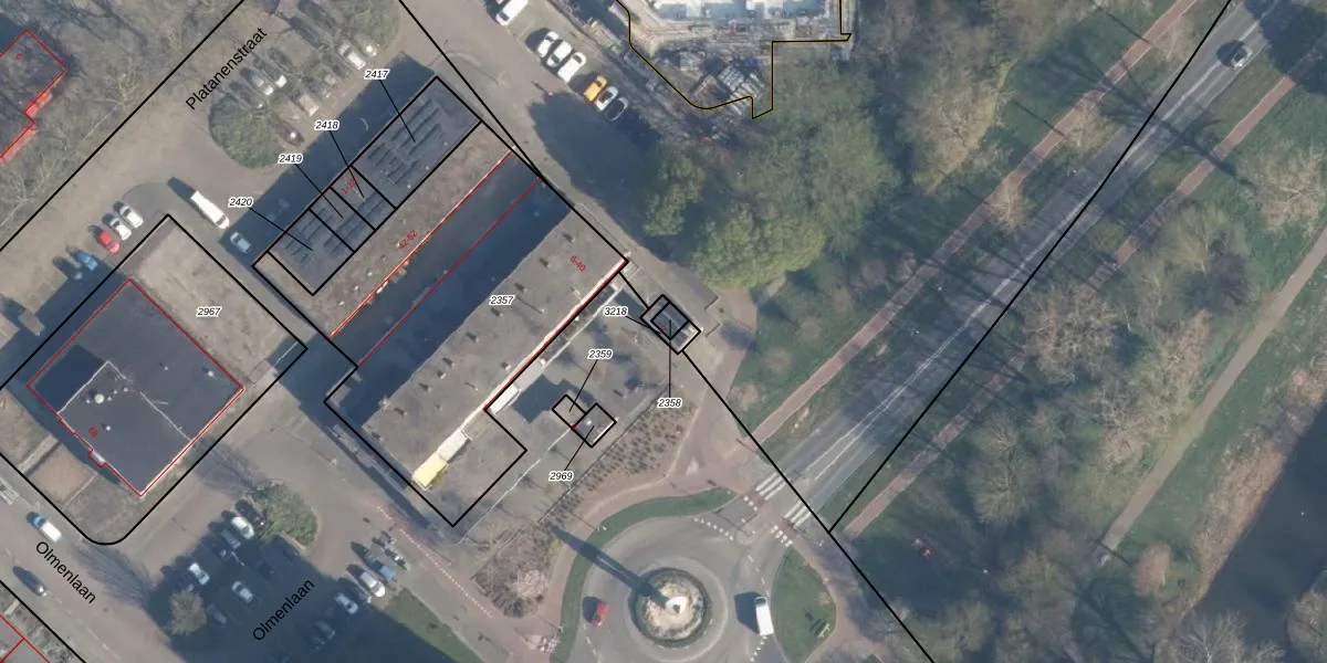 Het perceel waarop Olmenlaan 2 staat heeft een oppervlakte van 16 m². Dit is een klein perceel. De perceeloppervlakte wordt geregistreerd door het Kadaster. Gedetailleerde informatie over de maten van dit perceel kunt u vinden in het rapport Kadastrale kaart met maatvoering van Olmenlaan 2.
