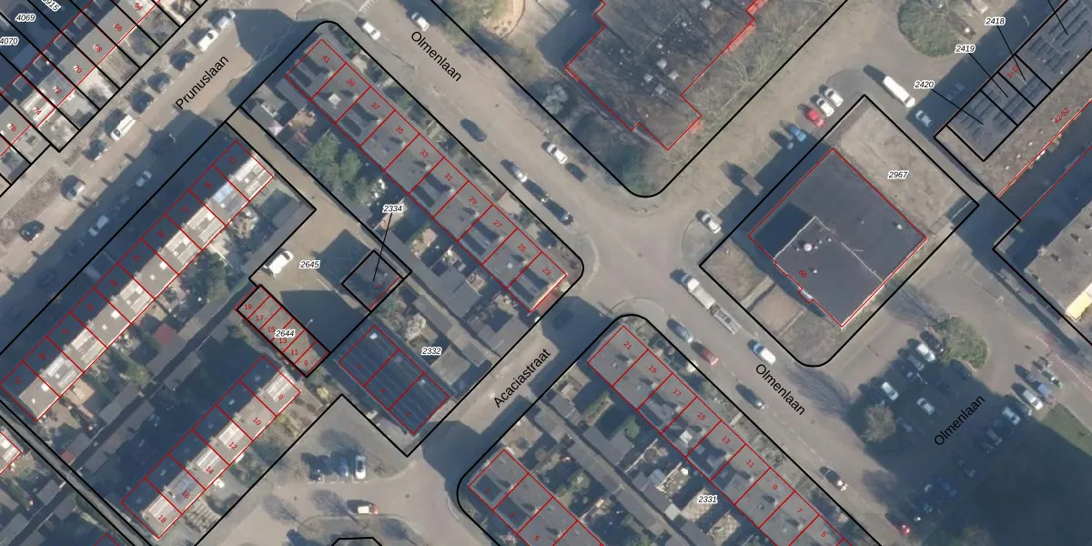 Olmenlaan 23 is gelegen op kadastraal perceel RDK01D2332. Deze kadastrale aanduiding is uniek en wordt gebruikt door het Kadaster om eigendomsrechten en andere zakelijke rechten vast te leggen. Het perceel maakt onderdeel uit van de kadastrale gemeente Ridderkerk.