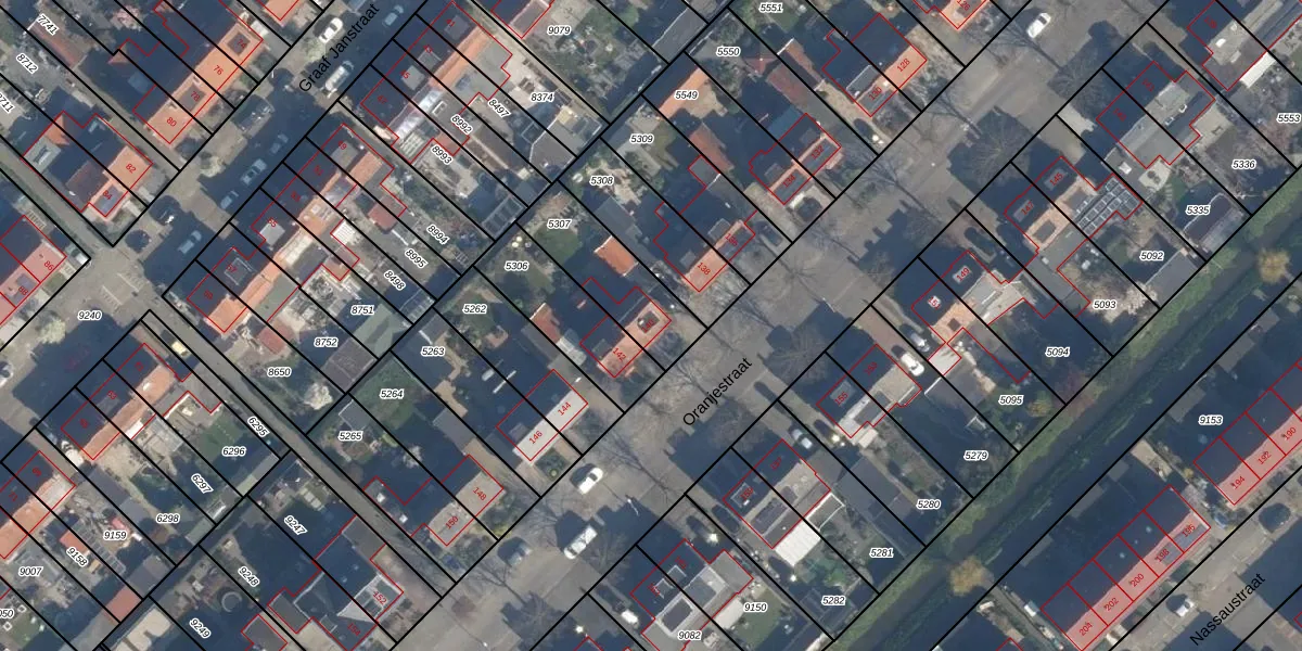 Het perceel waarop Oranjestraat 140 staat heeft een oppervlakte van 299 m². Dit is een middelgroot perceel. De perceeloppervlakte wordt geregistreerd door het Kadaster. Gedetailleerde informatie over de maten van dit perceel kunt u vinden in het rapport Kadastrale kaart met maatvoering van Oranjestraat 140.