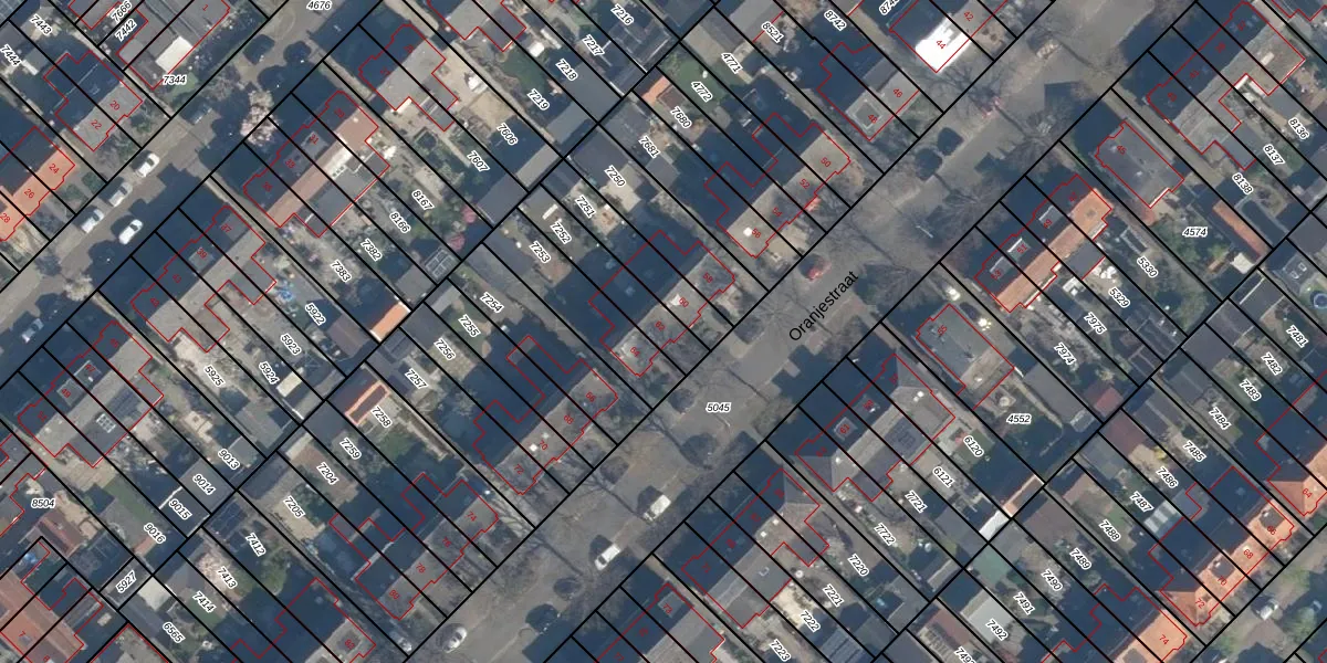 Het perceel waarop Oranjestraat 62 staat heeft een oppervlakte van 188 m². Dit is een middelgroot perceel. De perceeloppervlakte wordt geregistreerd door het Kadaster. Gedetailleerde informatie over de maten van dit perceel kunt u vinden in het rapport Kadastrale kaart met maatvoering van Oranjestraat 62.