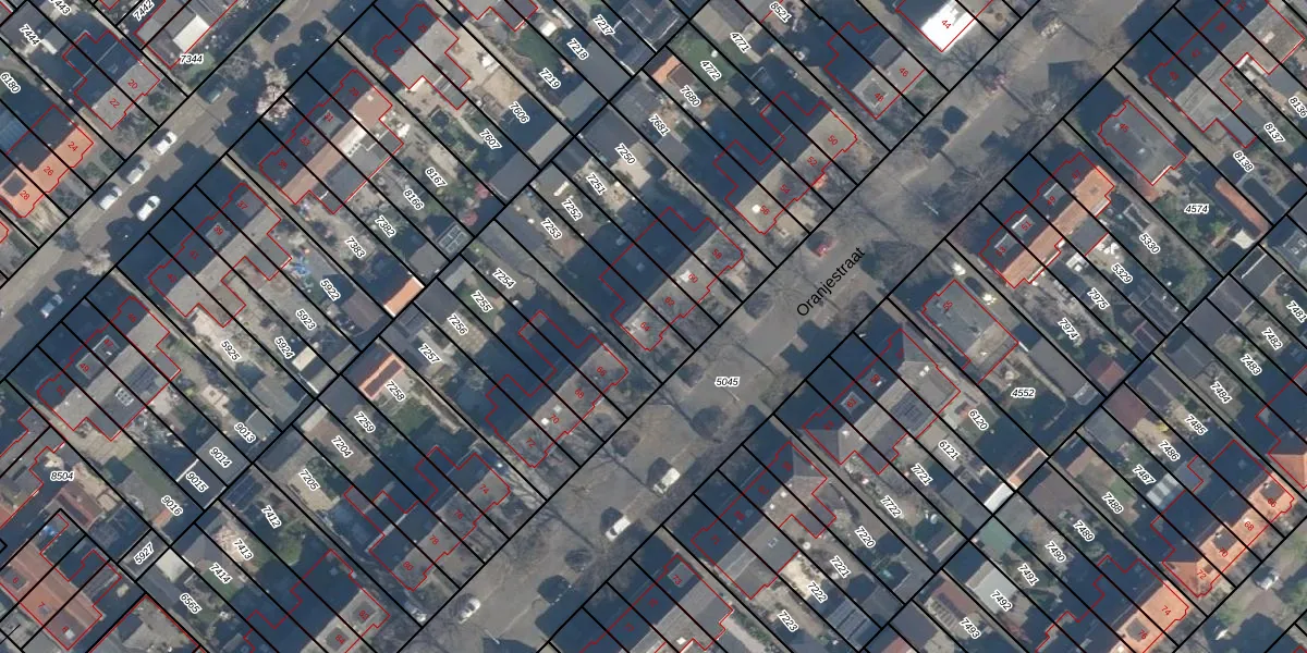 Het perceel waarop Oranjestraat 64 staat heeft een oppervlakte van 263 m². Dit is een middelgroot perceel. De perceeloppervlakte wordt geregistreerd door het Kadaster. Gedetailleerde informatie over de maten van dit perceel kunt u vinden in het rapport Kadastrale kaart met maatvoering van Oranjestraat 64.