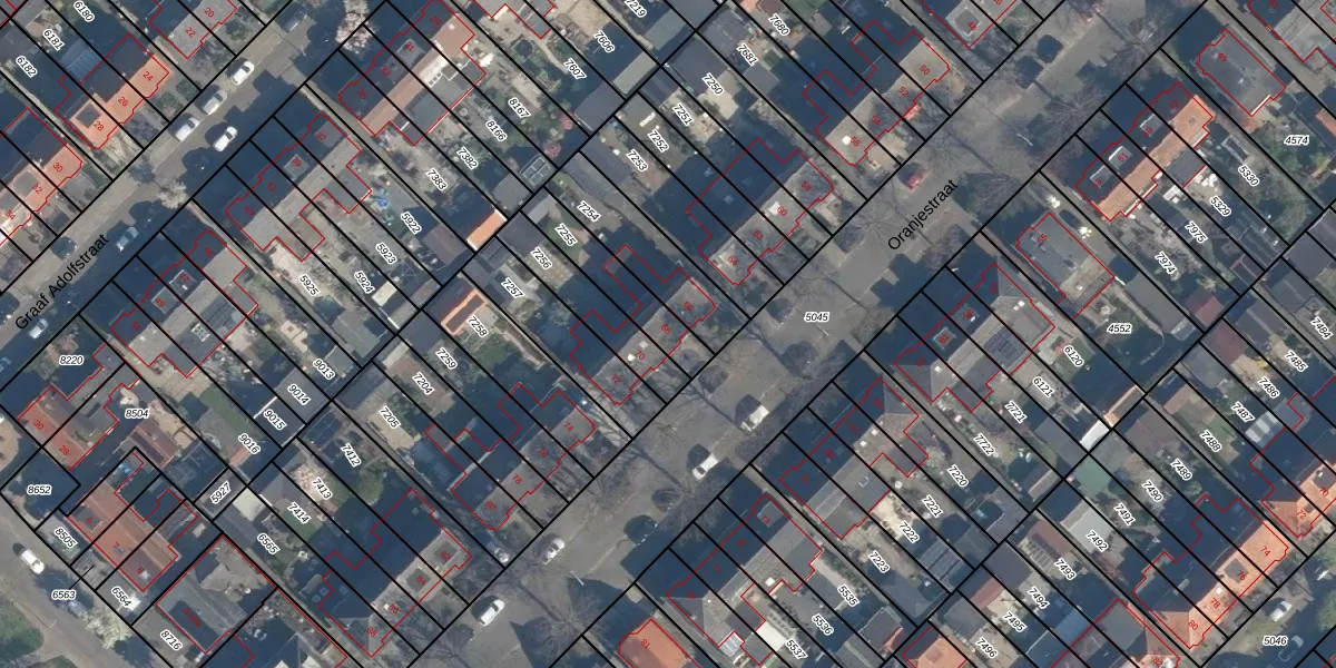 Het perceel waarop Oranjestraat 68 staat heeft een oppervlakte van 188 m². Dit is een middelgroot perceel. De perceeloppervlakte wordt geregistreerd door het Kadaster. Gedetailleerde informatie over de maten van dit perceel kunt u vinden in het rapport Kadastrale kaart met maatvoering van Oranjestraat 68.