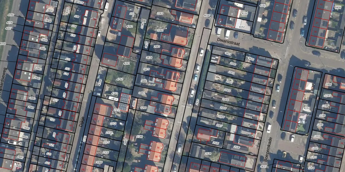 Het perceel waarop het adres ligt is RDK01-G-3480. De afkorting 'RDK01' staat voor kadastrale gemeente Ridderkerk. Het perceel is kleiner dan gemiddeld in Ridderkerk. Het perceel is 194 m² groot, terwijl het gemiddelde ligt op 1570,98 m². Het kleinste perceel in de kadastrale gemeente is 0 m² groot. De grootste perceeloppervlakte is 61,6 ha. Er zijn geen andere adressen aanwezig op het perceel. De laatste wijziging in het de Basisregistratie Kadaster (BRK) was op 29-07-2003.