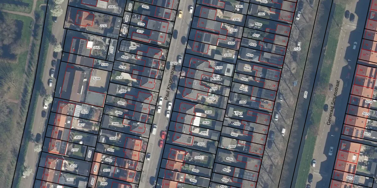 Het perceel waarop Paul Krugerstraat 91 staat heeft een oppervlakte van 187 m². Dit is een middelgroot perceel. De perceeloppervlakte wordt geregistreerd door het Kadaster. Gedetailleerde informatie over de maten van dit perceel kunt u vinden in het rapport Kadastrale kaart met maatvoering van Paul Krugerstraat 91.