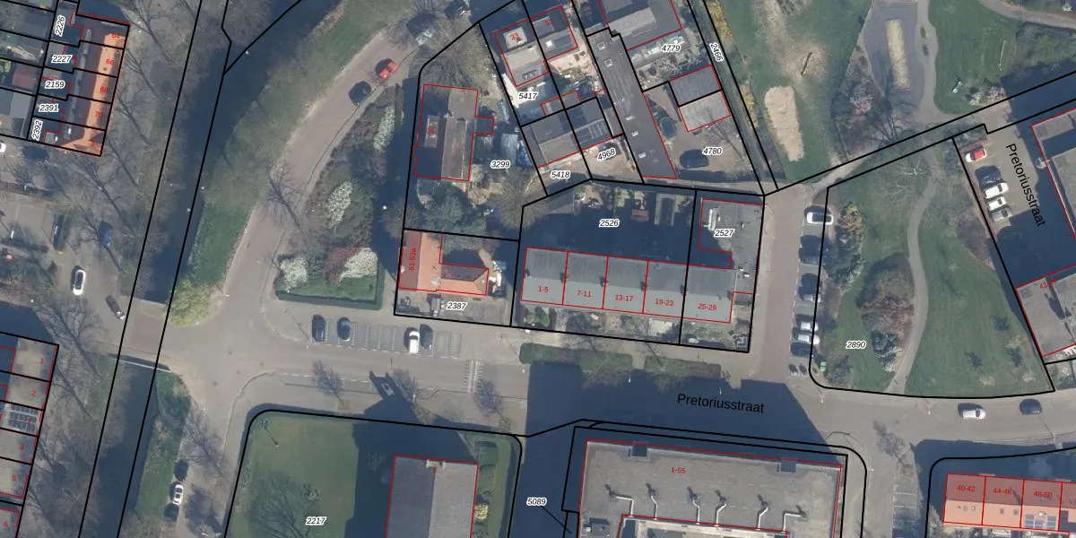 Pretoriusstraat 5 is gelegen op kadastraal perceel RDK01G2526. Deze kadastrale aanduiding is uniek en wordt gebruikt door het Kadaster om eigendomsrechten en andere zakelijke rechten vast te leggen. Het perceel maakt onderdeel uit van de kadastrale gemeente Ridderkerk.